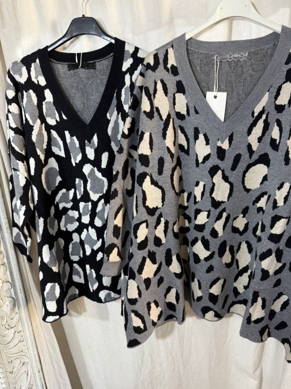 Sweaters oversize de lanilla , mangas largas escote en V, diseño de animal print